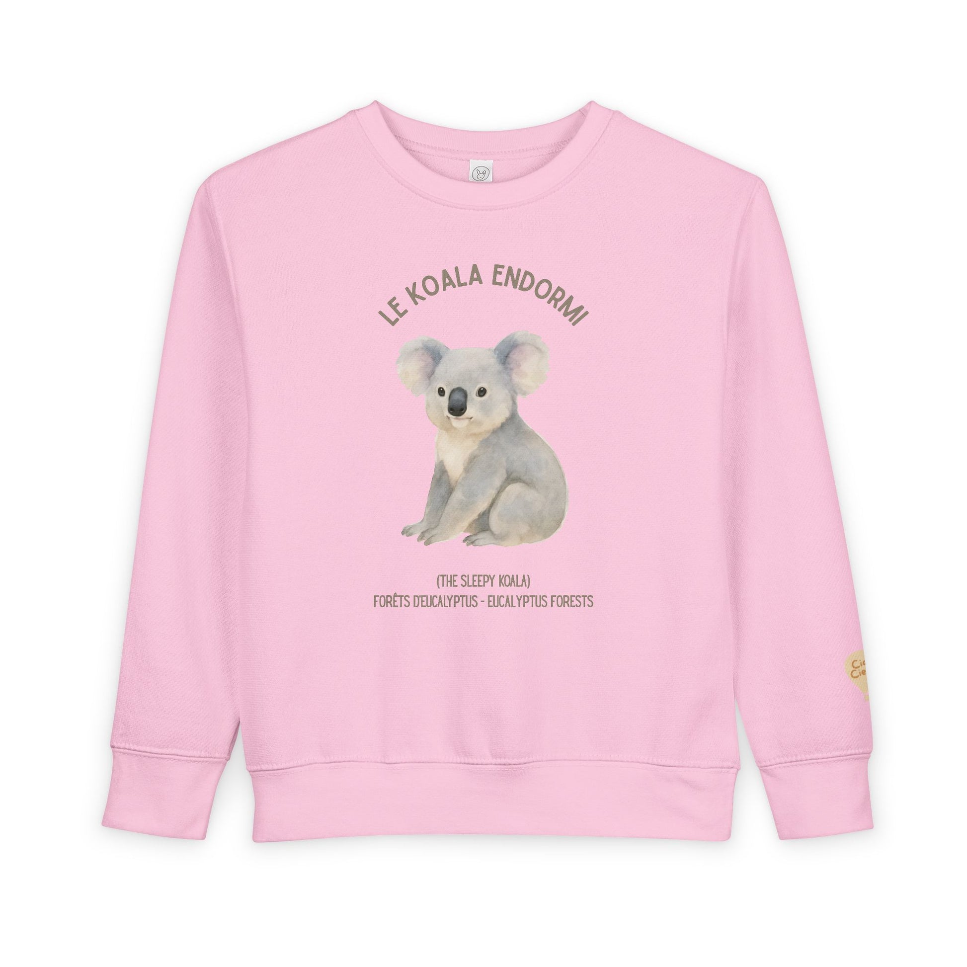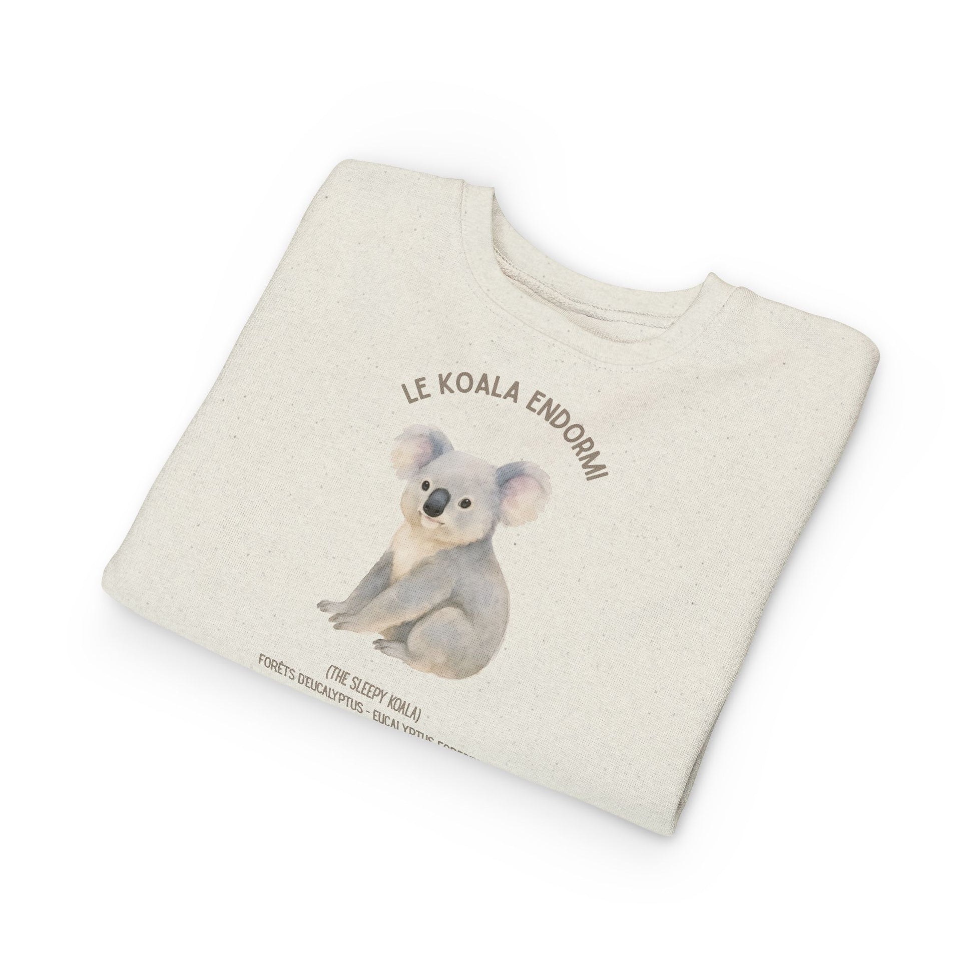 A cozy toddler sweatshirt featuring a soft watercolor koala illustration and gentle earth-tone lettering. Lightweight but warm, it wraps little ones in breathable cotton-blend comfort while keeping seams and tags from irritating sensitive skin. The calm, nature-inspired design brings a quiet, sleepy-forest mood to everyday play and nap time — a garment that feels like a small hug from the Australian bush. Thoughtful construction (ribbed cuffs and waistband, coverstitched seams) helps the sweatshirt hold its shape through washes, and the easy-tear label keeps dressing fuss-free for caregivers.