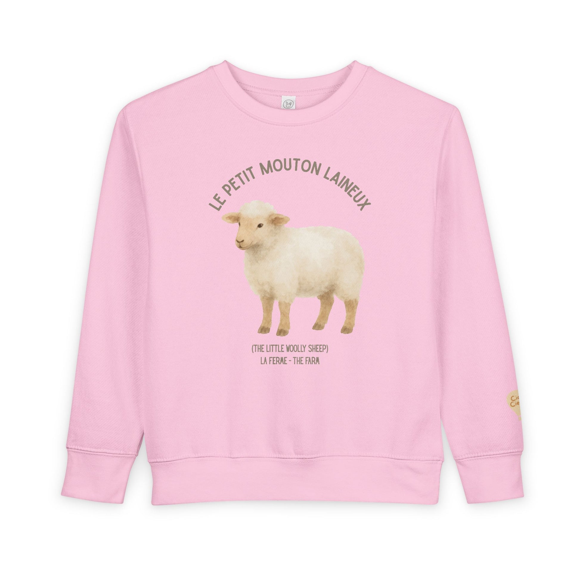 Soft, cozy, and gently playful — this toddler sweatshirt wraps little ones in warmth and quiet charm. A hand-painted lamb sits at the center, rendered in warm neutrals that blend with the natural heather fabric. The French phrase above adds a delicate, storybook feel while the midweight knit holds shape and comfort through active days and slow mornings alike. Thoughtful details — like a tear-away label and ribbed cuffs and waistband — keep movement easy and irritation-free, so children can climb, nap, and explore without fuss. It’s a small, comforting layer that feels like a shared moment: a morning on the farm, a bedtime story, or a chilly walk with tiny hands tucked close.
